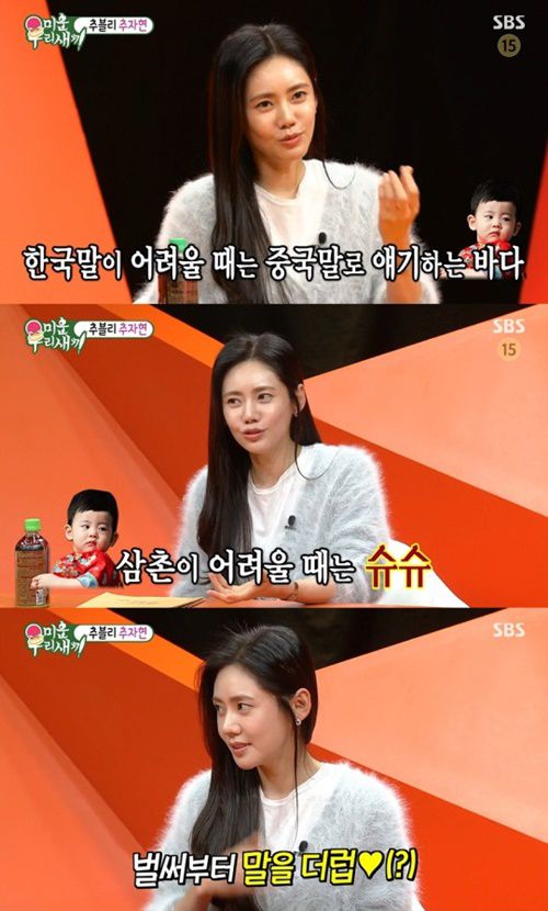 이날 추자현은 “이제 (아들이)3살이다. 말을 하는데 한국말이 어려우면 중국말로 한다”라며 말했다.