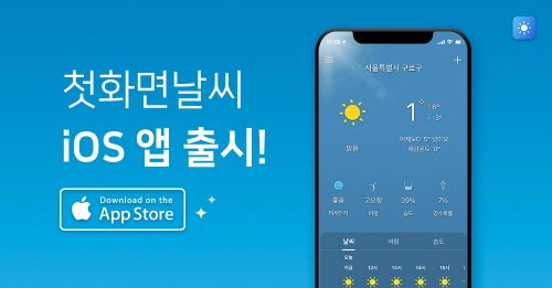 구글 플레이 스토어 1위 첫화면 날씨를 이제 애플 앱스토어에서도 다운받을 수 있게 되었다. 아이폰 사용자의 많은 요청으로 이룬 성과이다. 첫화면날씨를 사용하지 못해 아쉬워하던 아이폰 및 아이패드 유저들에겐 반가운 소식이다.