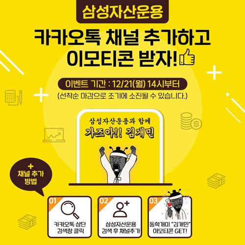 ▲ 삼성자산운용은 카카오톡 채널 신규 구독자를 상대로 '동학개미' 카카오톡 이모티콘을 증정한다. 21일 오후 2시부터 카카오톡에서 삼성자산운용을 검색한 뒤 채널 추가를 하면 선착순 6만명에 한해 이모티콘이 자동 지급된다. 카카오톡 채널에서는 금융교육 콘텐츠, 유튜브 라이브 금융 세미나 등 다양한 투자 정보가 제공된다. (서울=연합뉴스)