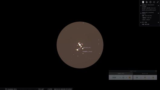 망원경으로 약 55배 배율로 관측 시 모습 (국립과천과학관 제공, 스텔라리움 캡쳐_) 2020.12.17 /뉴스1 |