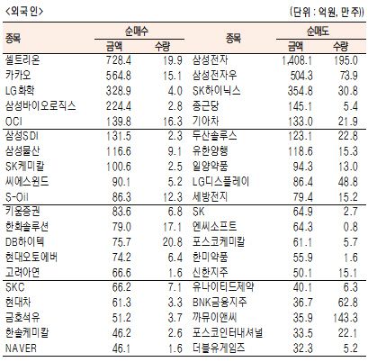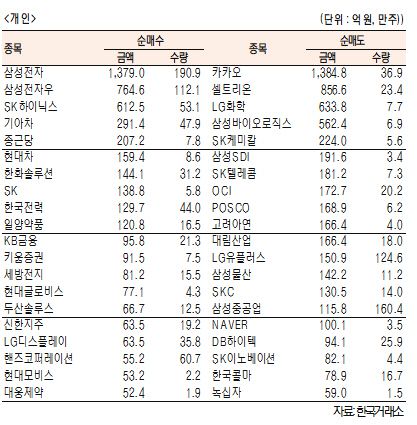 [표]유가증권 기관·외국인·개인 순매수·도 상위종목(12월 21일-최종치)