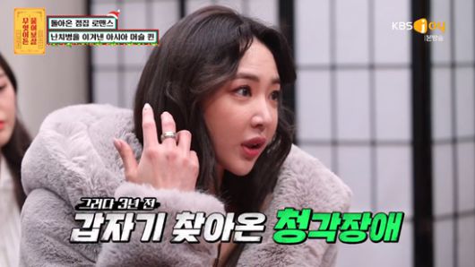 이연화는 "어린 나이부터 꽃길을 걷고 있었다. 일을 너무 좋아했다. 남자친구보다 항상 일이 먼저였다. 그러다 3년 전에 갑자기 청각장애가 찾아왔다"라며 이관개방증이라는 난치병을 앓고 있다고 밝혔다. 이관개방증은 닫혀 있어야 할 이관이 주변 근육 수축으로 열리면서 발생하는 증상이다.