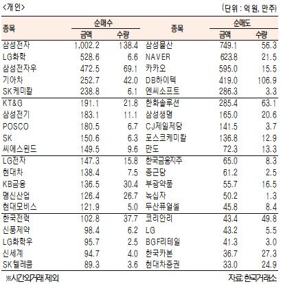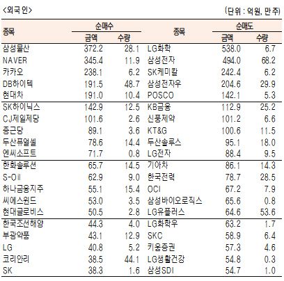 [표]유가증권 기관·외국인·개인 순매수·도 상위종목(12월 22일)