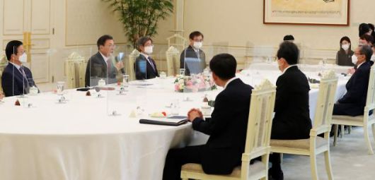 문재인 대통령은 22일 오전 청와대로 박병석 국회의장, 김명수 대법원장, 유남석 헌법재판소장, 정세균 국무총리, 노정희 중앙선거관리위원장 등 5부 요인을 초청해 간담회를 열고 신종 코로나바이러스 감염증(코로나19) 사태 극복 방안과 권력기관 개혁 등 국정현안에 대한 의견을 나눴다.