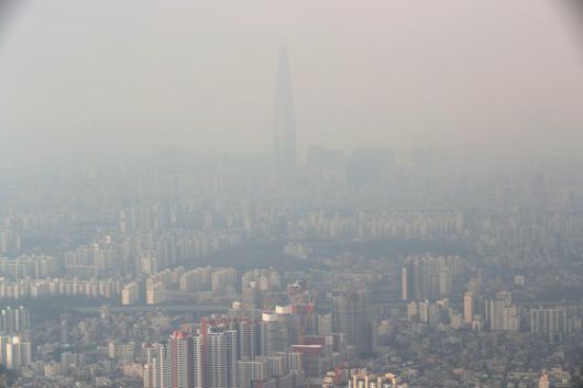 미세먼지가 나쁨 수준을 보인 지난 22일 오후 경기도 광주 남한산성에서 바라본 서울 송파와 위례 일대가 연무와 미세먼지로 인해 뿌옇게 보이고 있다. 장진영 기자 |
