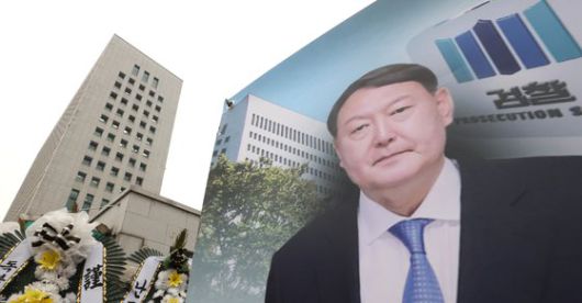 윤석열 검찰총장에 대한 정직 처분 집행정지 재판의 2차 심문기일을 하루 앞둔 23일 오전 서울 서초구 대검찰청 앞에 윤 총장 응원 배너가 설치되어 있다. 연합뉴스 |