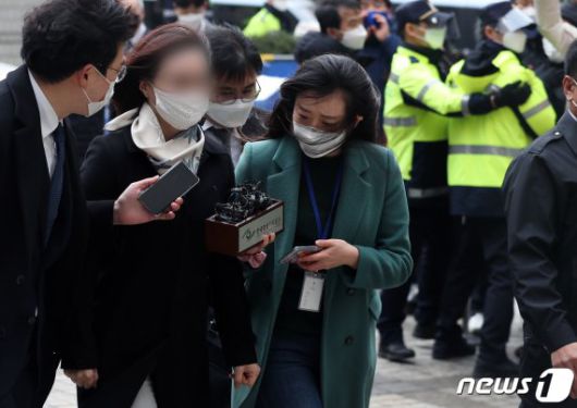 사모펀드 및 자녀 입시비리' 등의 혐의를 받는 정경심 동양대학교 교수가 23일 오후 서울 서초구 서울중앙지방법원에서 열린 자본시장과 금융투자업에 관한 법률위반 등 관련 1심 선고공판에 출석하고 있다.1 © News1 이동해 기자 /사진=뉴스1 |