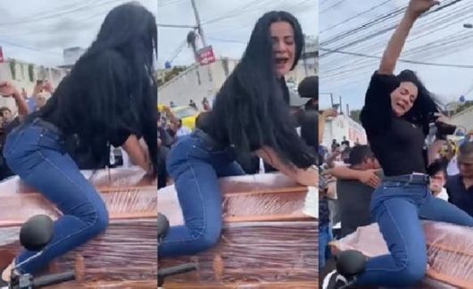 콜롬비아의 한 여성이 운구 중인 남편의 관에 올라타고 신나게 춤을 춰 논란이 됐다.