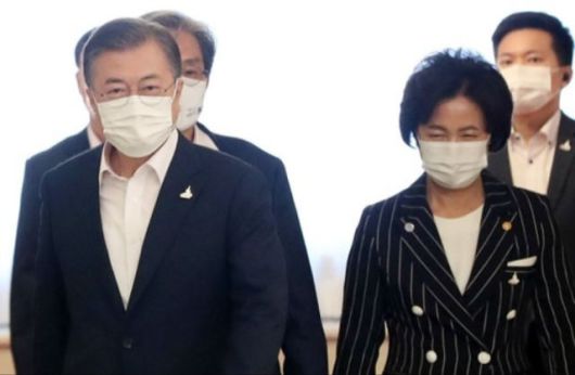 지난 9월 청와대에서 열린 회의에 문재인 대통령이 추미애 법무부 장관(오른쪽)과 나란히 참석하는 모습. 뉴시스 |
