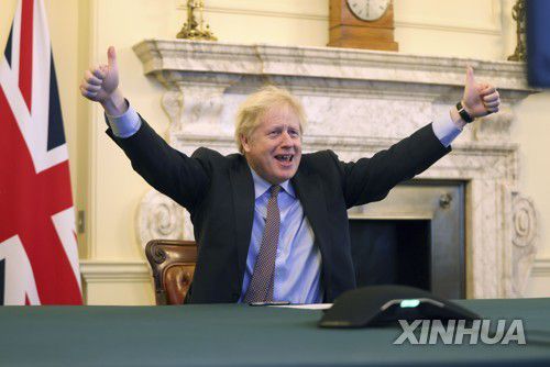 EU와 미래관계 협상 합의 소식을 듣고 기뻐하는 보리스 존슨 영국 총리 [신화=연합뉴스] |