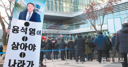 결국 살아난 윤석열 총장 24일 윤석열 검찰총장에 대한 정직 2개월의 징계 처분 집행정지 2차 심문이 열린 서울행정법원 앞에서 윤 총장의 지지자가 윤 총장을 응원하는 문구가 적힌 배너를 세워놓고 시위를 하고 있다. 홍진환 기자 jean@donga.com |