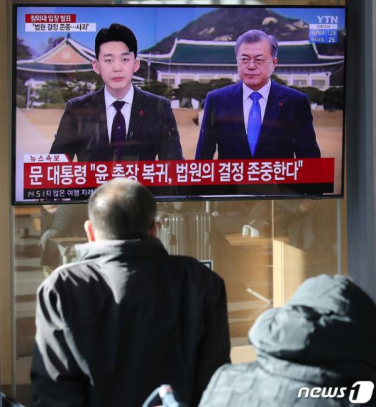 법원의 윤 총장 복귀 결정과 관련해 강민석 청와대 대변인은 문 대통령이 "법원의 결정을 존중한다"는 입장을 밝혔다고 전했다. 문 대통령은 "결과적으로 국민께 불편과 혼란을 초래하게 된 것에 대해 인사권자로서 사과 말씀을 드린다"고 했다.