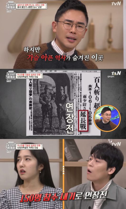 '벌거벗은 세계사' 설민석이 다니엘·동애영과 함께 난징 대학살에 대해 알아봤다.