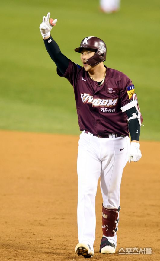 2020 KBO리그 와일드카드 결정전 LG 트윈스와 키움 히어로즈의 1차전이 2일 잠실야구장에서 열렸다. 키움 김하성이 13회 1사1루 중전안타를 친 후 세리머니를 하고 있다. 잠실 | 최승섭기자 thunder@sportsseoul.com |
