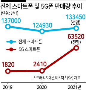 전체 스마트폰 시장에서 5G폰이 차지하는 비중도 올해 20.1%에서 내년엔 47.6%로 2배 이상 커진다.