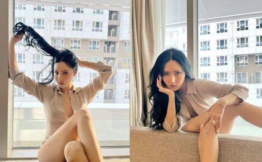 특히 그는 가슴이 파인 니트와 구릿빛 피부의 다리라인이 인상적이다.