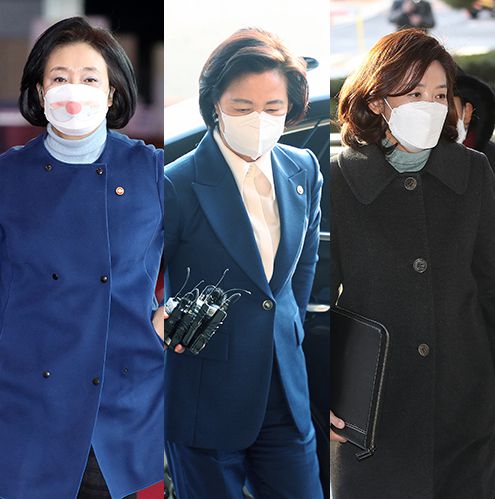 박영선 중소벤처기업부장관(왼쪽부터), 추미애 법무부 장관, 나경원 국민의힘 전 의원. 연합뉴스 |