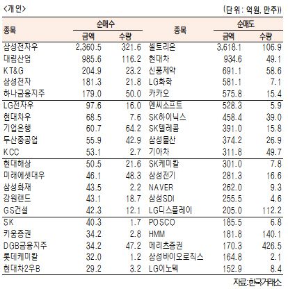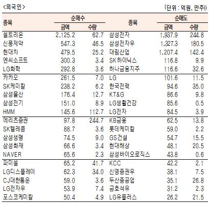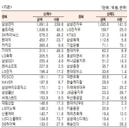 [표]유가증권 기관·외국인·개인 순매수·도 상위종목(12월 28일-추정치)