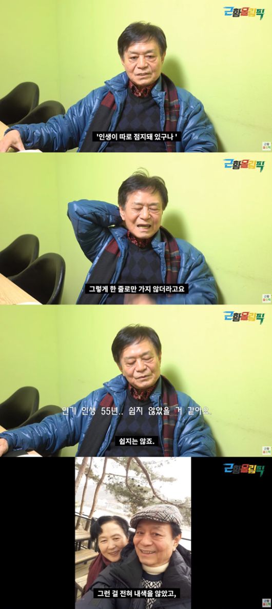 이어 홍순창은 55년 연기 인생에 대해 "쉽지는 않다. 한 우물 판다는 게. 이 길을 청년 시절부터 쭉 이어왔다는 게 우리 집사람의 도움 덕"이라며 아내에 대한 고마움을 전했다. 홍순창은 "저도 보답으로 그 사람 대학원을 내가 벌어서 등록금만은 해줬다"며 "아직도 나 홍순창이 버리지 않고 생활해 준다는 게 고맙다"고 애틋함을 표했다.