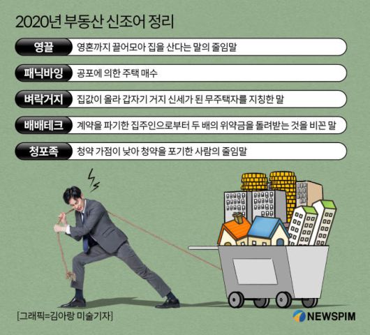 사회적 갈등 양상으로 불거지자 시대를 풍자하거나 비꼬는 신조어가 대거 생겨났다. 영혼까지 끌어모아 아파트를 산다는 '영끌'과 공황 상태에서의 구매를 뜻하는 '패닉바잉'은 올해 부동산 시장을 설명하는 대표적인 신조어가 됐다.