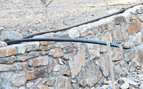 주민이 산에서 내려오는 계곡물을 생활용수로 사용하기 위해 설치한 호스다.