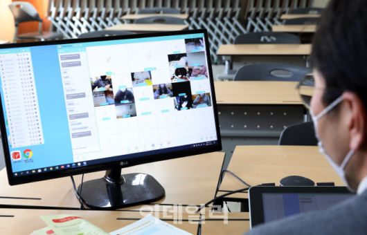 신종 코로나바이러스 감염증(코로나19) 3차 대유행으로 수도권 유·초·중·고교 등교중단을 하루 앞둔 14일 오후 인천시 부평구 인천외고에서 온라인 수업을 하고 있다.(사진=뉴시스) |