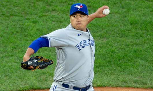 MLB 토론토의 류현진이 지난 9월 20일 미국 필라델피아에서 열린 리그 경기에 선발 등판해 공을 뿌리고 있다. 필라델피아=AP연합뉴스 |