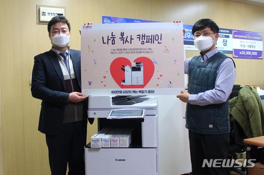 [서울=뉴시스] 고은결 기자 = 사무기 통합솔루션 전문기업 캐논코리아 비즈니스 솔루션은 사회적기업에 사무기를 지원하는 '나눔 복사' 캠페인을 성료했다고 30일 밝혔다.
