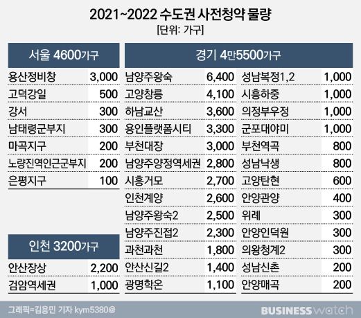 이들 모두 서울과 가깝거나 대규모 사업지로 수요자들의 눈길을 끌고 있다. 청약대기자들의 내 집 마련 불안 심리를 덜기 위해 부활한 '사전청약' 제도도 열기를 끌어올렸다. ☞관련기사 9년만에 부활한 '사전청약제' 이번엔 꽃길 걸을까