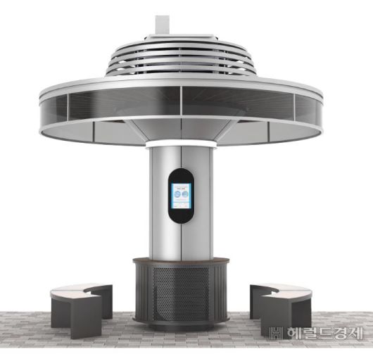 스마트 쉼터는 폭 3.5m×높이 3.8m의 규모로 IoT 센서가 탑재돼 외부 공기 변화에 자동으로 작동된다. 대형 공기막(에어돔)을 형성, 30분 이상 가동 시 (초)미세먼지 유입을 최대 60%까지 막아 돔 내부에 맑은 공기를 제공하며, 공기의 밀도를 높여 비말에 의한 감염병을 예방하는 효과가 있다고 구는 설명했다.