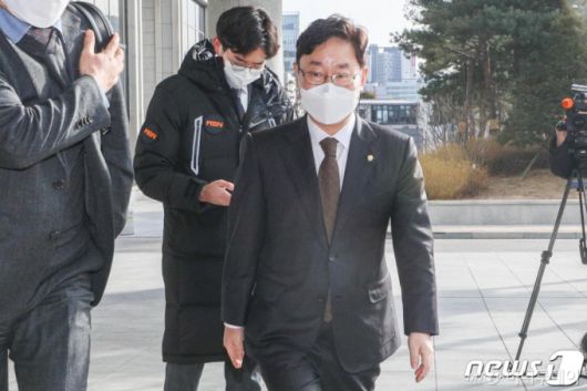 (서울=뉴스1) 성동훈 기자 = 박범계 법무부 장관 후보자가 31일 서울 서초구 서울고등검찰청에 마련된 인사청문회 사무실로 출근하고 있다. 2020.12.31/뉴스1 |