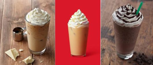 휘핑크림이 들어간 커피 음료들. 스타벅스 홈페이지 캡처 |