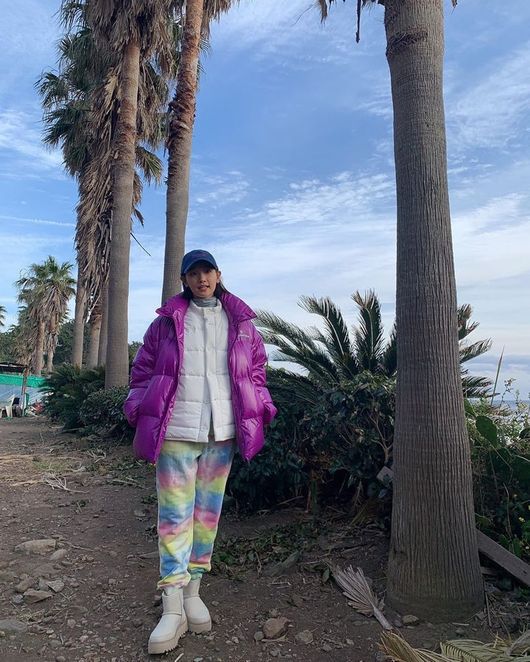 사진 속 박소담은 JTBC '갬성캠핑'에서 떠난 제주도를 배경으로 해맑게 웃고 있는 모습. 박소담은 컬러풀한 바지와 보라색 패딩, 어그부츠를 매치하면서 여친룩 느낌을 배가시켰다.
