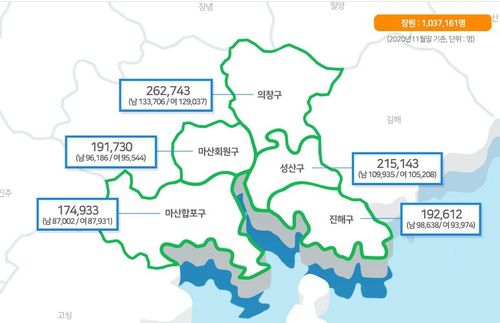 (창원=연합뉴스) 이정훈 기자 = 수도권 대도시를 제외한 전국 유일한 인구 100만 기초지자체인 경남 창원시가 새해 벽두부터 인구 늘리기에 나선다.