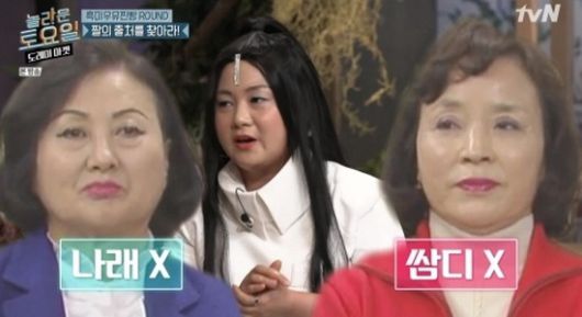 그런가 하면 이날 간식 타임에는 인터넷 유행 짤의 원작 맞추기가 펼쳐졌다. 대결 도중 모두를 빵 터트린 짤이 등장했는데 바로 박나래-쌈디 짤이었다. ‘무엇이든 물어보세요’에 나온 일반인이 박나래-쌈디와 싱크로율 100%를 자랑했던 것. 급 당황한 박나래는 “파란 옷을 입은 어르신은 제가 아니고, 그 옆에 분은 쌈디가 아니다”라고 해명해 이날 스튜디오를 웃음으로 초토화시켰다.