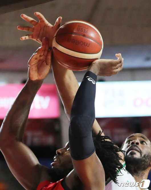 (서울=뉴스1) 이성철 기자 = 3일 오후 서울 송파구 잠실학생체육관에서 열린 프로농구 '2020-2021 현대모비스 KBL' 서울 SK 나이츠와 원주 DB 프로미의 경기에서 DB 얀테 메이튼이 블록슛을 하고 있다. 2021.1.3/뉴스1groot@news1.kr[© 뉴스1코리아(news1.kr), 무단 전재 및 재배포 금지]