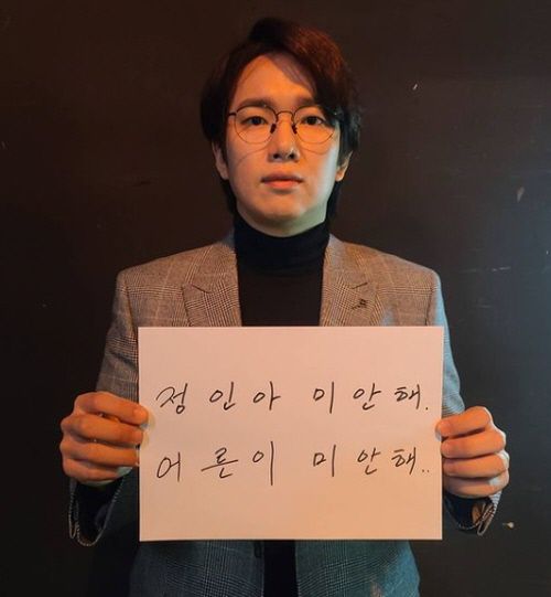 사진 속 장성규는 '정인아 미안해. 어른이 미안해'라는 글이 적인 종이를 들고 있다.