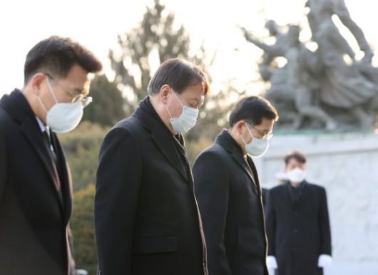 윤석열 검찰총장이 새해를 맞아 대검 간부들과 함께 국립서울현충원을 찾아 참배했다.