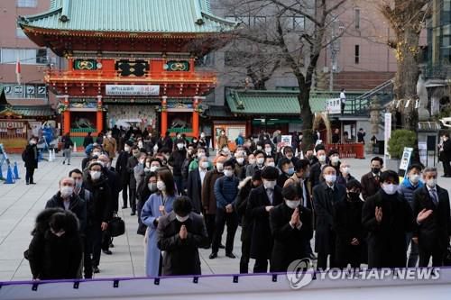 (도쿄 AFP=연합뉴스) 4일 오전 일본 도쿄의 한 신사에서 참배객들이 합장하고 있다. |