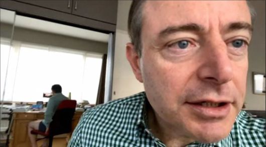 벨기에 도시 앤트워프의 바르트 데 베버 시장이 방송사와 신년 화상인터뷰를 하던 도중 거울을 통해 비친 모습을 통해 바지를 입고 입지 않고 있던 사실이 들통났다. [VRT NWS 방송 캡처] |