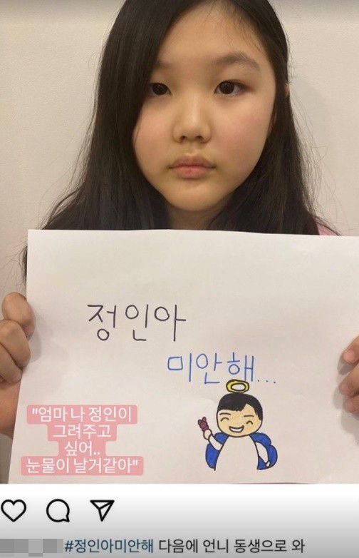 윤혜진은 지온 양의 사진을 올리며 "다음에 언니 동생으로 와"라는 글을 남겨 뭉클하게 만들었다.