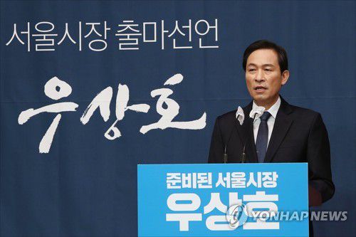 서울시장 보궐선거 출마 선언하는 우상호 의원 |