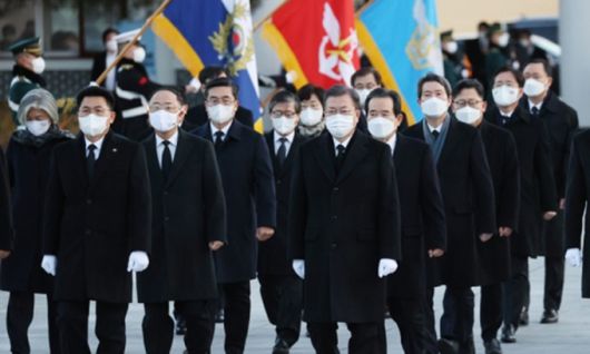 문재인 대통령이 지난 2일 오전 국무위원들과 서울 동작구 국립서울현충원을 찾아 참배하기 위해 입장하고 있다. 연합뉴스 |
