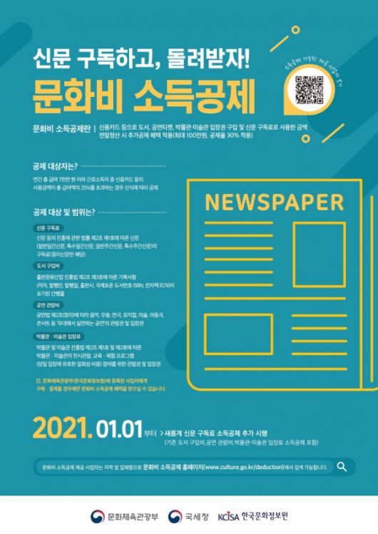 한국문화정보원 문화비 소득공제 - 신문구독료 포스터 |