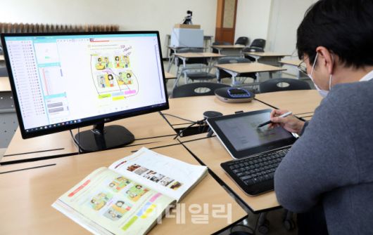 지난달 14일 오후 인천시 부평구 인천외고에서 온라인 수업을 하고 있다.(사진=뉴시스) |