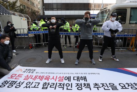 무기한 영업 중지 조치에 불복해 항의 차원에서 전날 300여 곳이 매장 문을 여는 ‘오픈 시위’에 나섰던 실내체육시설 업주들은 이날 거리로 뛰쳐나왔다. 필라테스·피트니스 사업자 연맹은 서울 여의도 더불어민주당사 앞으로 달려가 “형평성과 실효성을 갖춘 방역 대책을 마련하라”고 촉구했다. 수도권 헬스장 등 실내체육시설은 지난해 12월 8일 사회적 거리 두기가 2.5단계로 격상된 후 집합금지 대상이 돼 한 달가량 영업이 중단된 상태다.