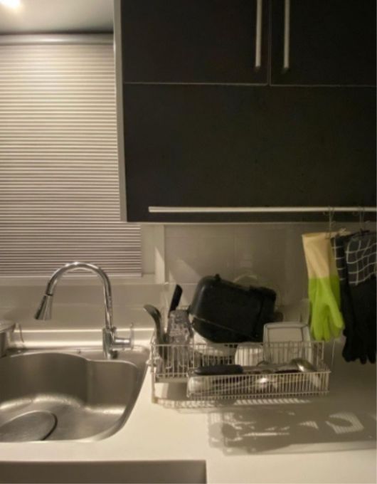 설거지를 도와주는 남편에게 고마워하고 있는 모습. 서로를 도와주며 사는 달달한 부부의 모습이다.