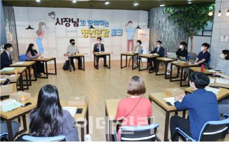 지난해 8월 13일 대전 동구 중앙로 청년공간 청춘나들목에서 허태정 대전시장과 청년 20여명이 참석한 가운데 ‘대전청년, 내일을 말하다’를 주제로 ‘청년공감토크’가 열리고 있다.
