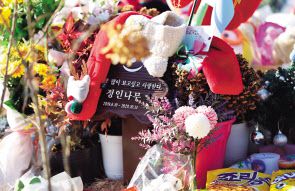 6일 오전 경기 양평 하이패밀리 안데르센 공원묘지에 안장된 정인 양의 묘지에 추모객들이 놓고 간 편지와 선물이 놓여 있다. [연합] |