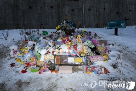 (양평=뉴스1) 이승배 기자 = 7일 오후 경기 양평 하이패밀리 안데르센 공원묘원에 양부모의 학대로 숨진 16개월 영아 정인(가명)양을 추모하며 시민들이 갖다 놓은 물품들이 놓여있다. '정인이 학대 사망'과 관련해 연일 사회 곳곳에서 추모와 분노의 물결이 일자 전날 김창룡 경찰청장의 대국민 사과에 이어 이날 국회가 부랴부랴 법 개정 논의에 들어갔다. 여야는 국회 법제사법위원회 법안소위에서 오는 8일까지 아동학대 예방과 가해자 처벌을 강화하는 이른바 '정인이법'을 처리하기로 이날 합의했다. 2021.1.7/뉴스1 |